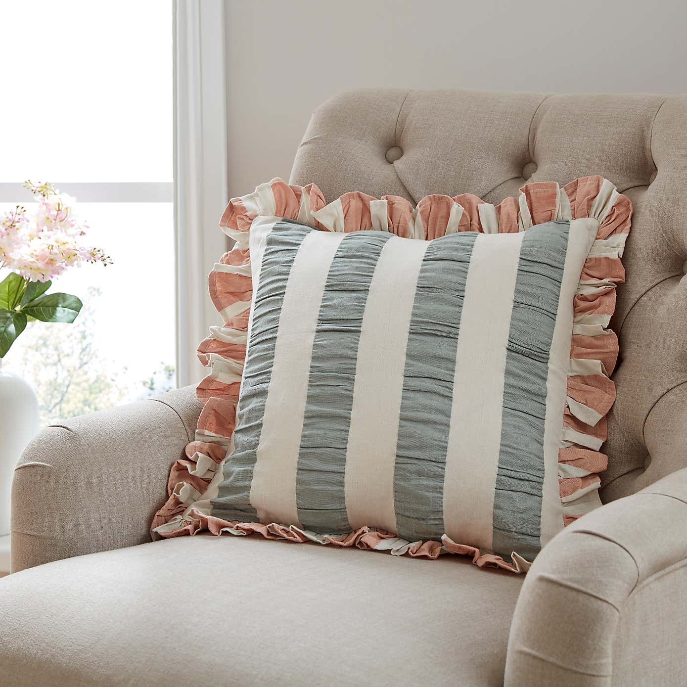 Seersucker Stripe Frill Cotton Square Cushion