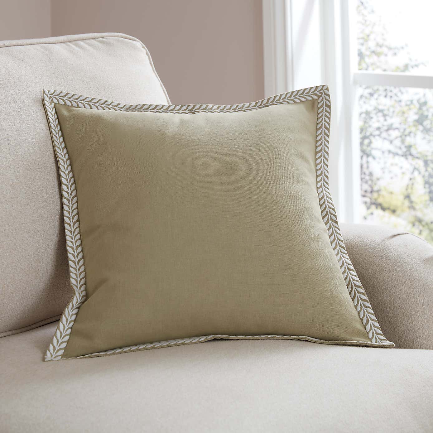 Leaf Embriodered Edge Square Cushion Cover