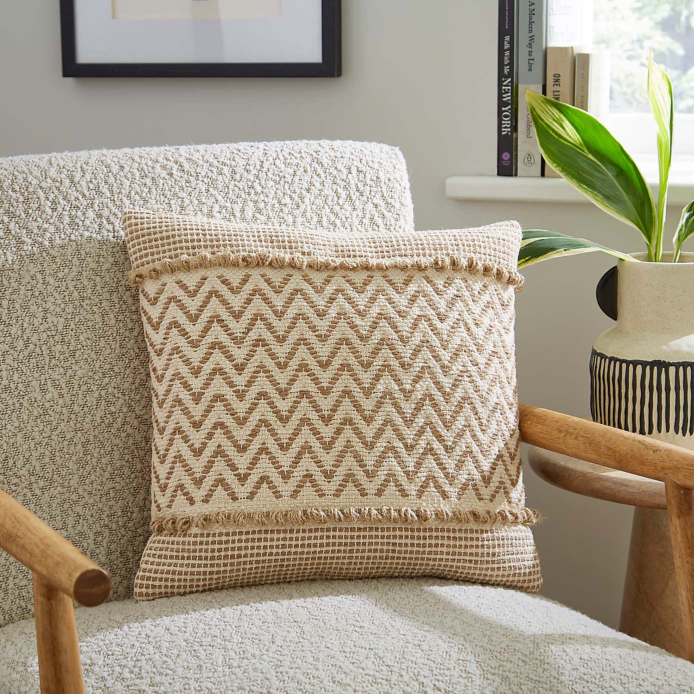 Jute Ivory Zig Zag Square Cushion