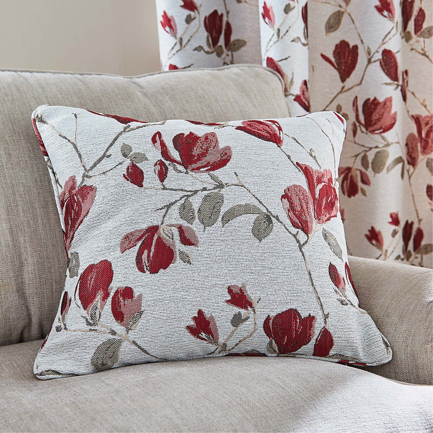 Ellis Floral Jacquard Red Cushion