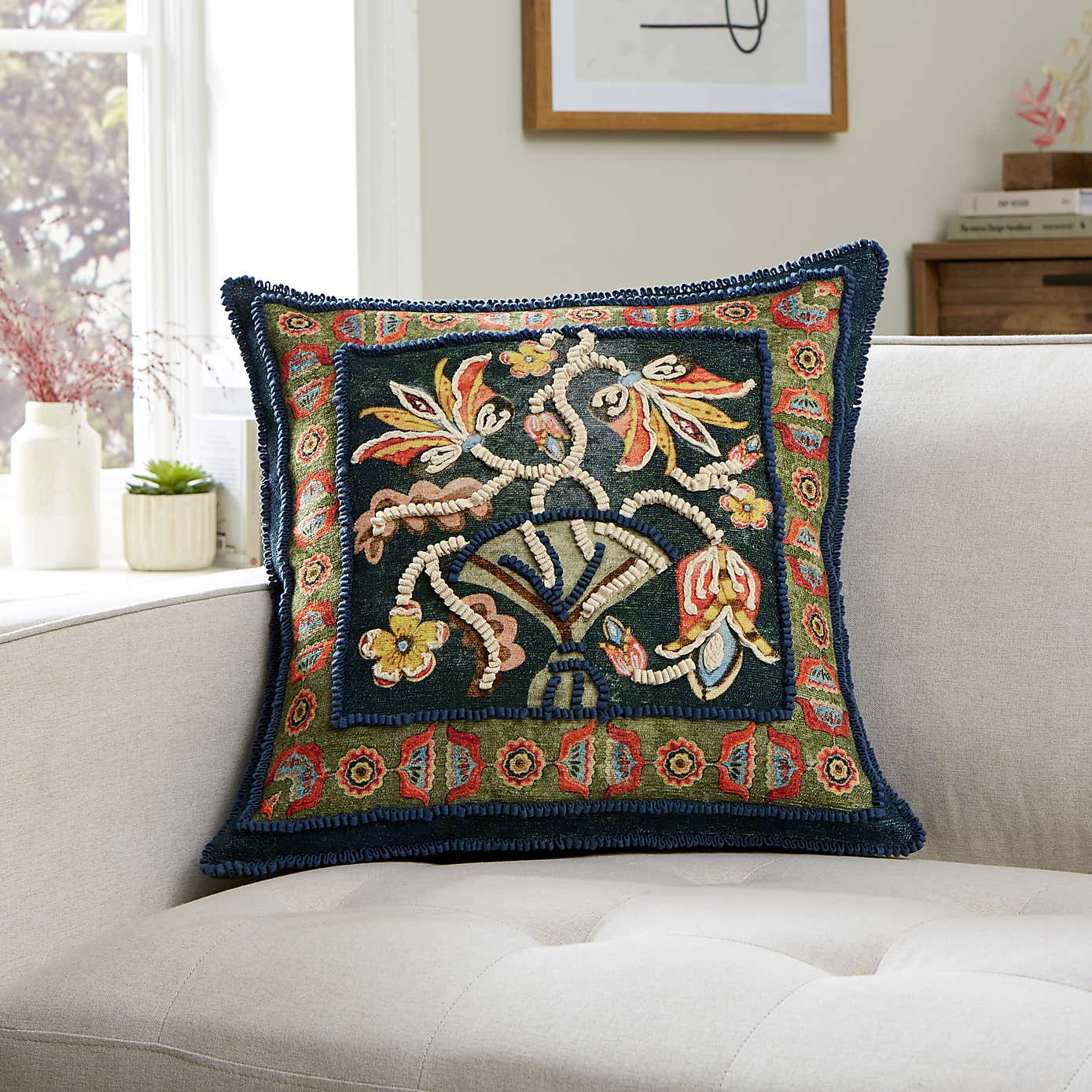 Embroidered Vase Cushion