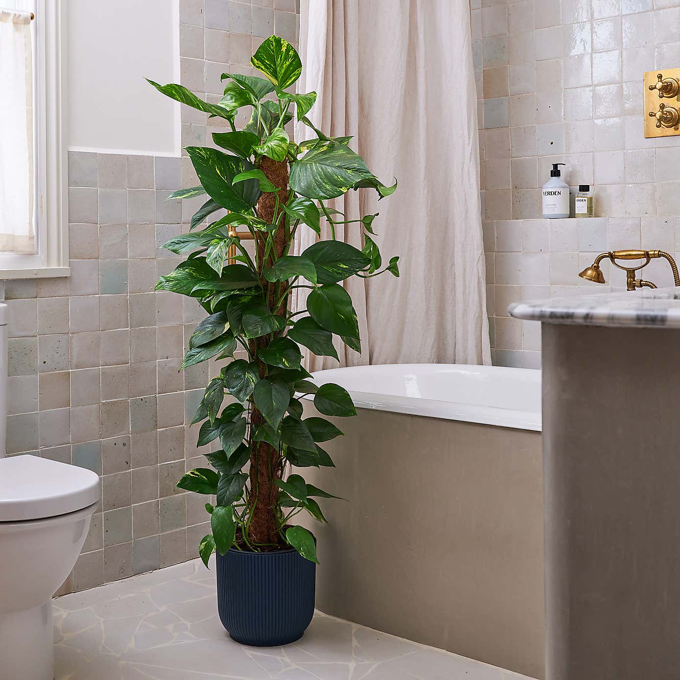 Beards & Daisies Devil's Ivy Moss Pole House Plant in Capri Pot