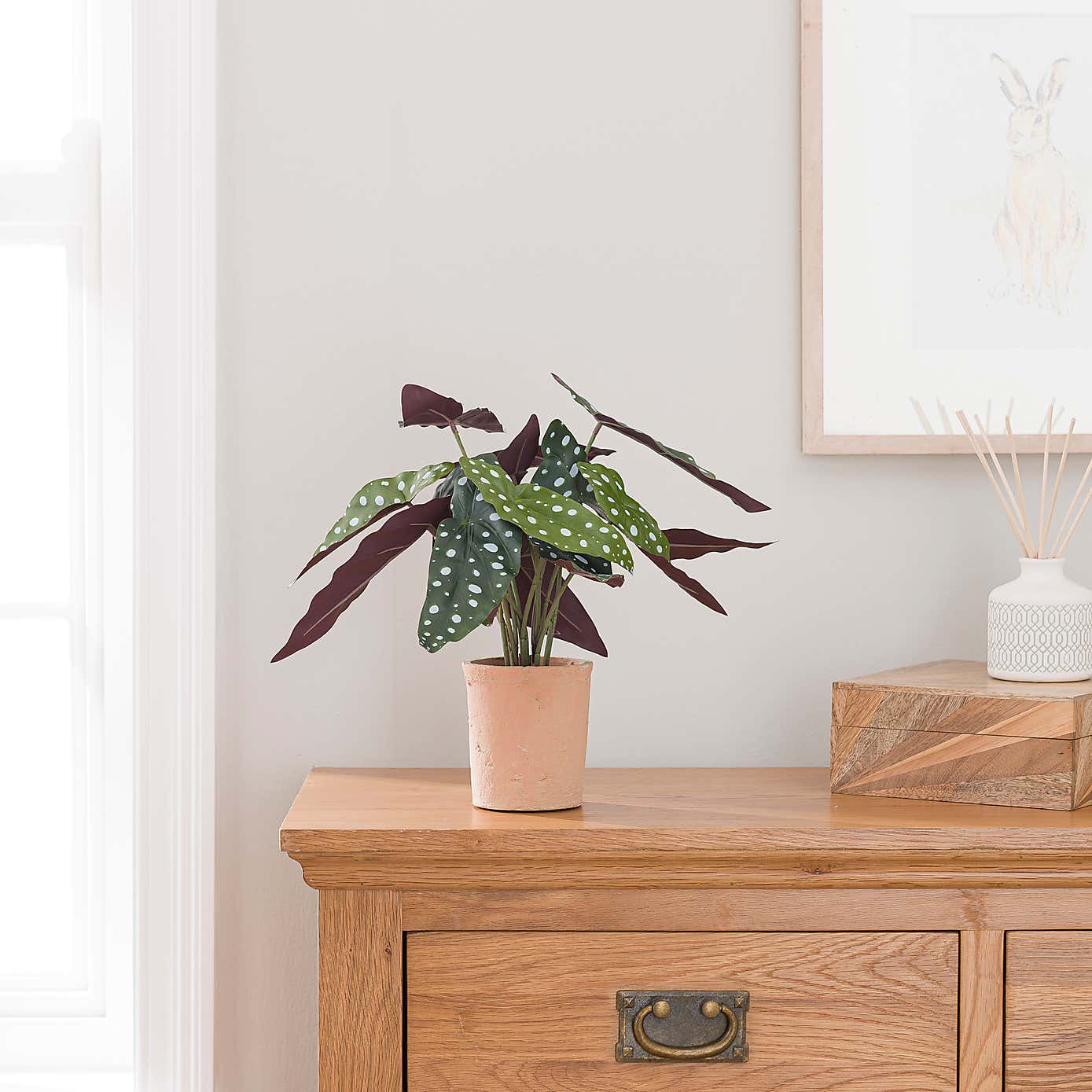 Artificial Polka Dot Begonia in Orange Cement Plant Pot