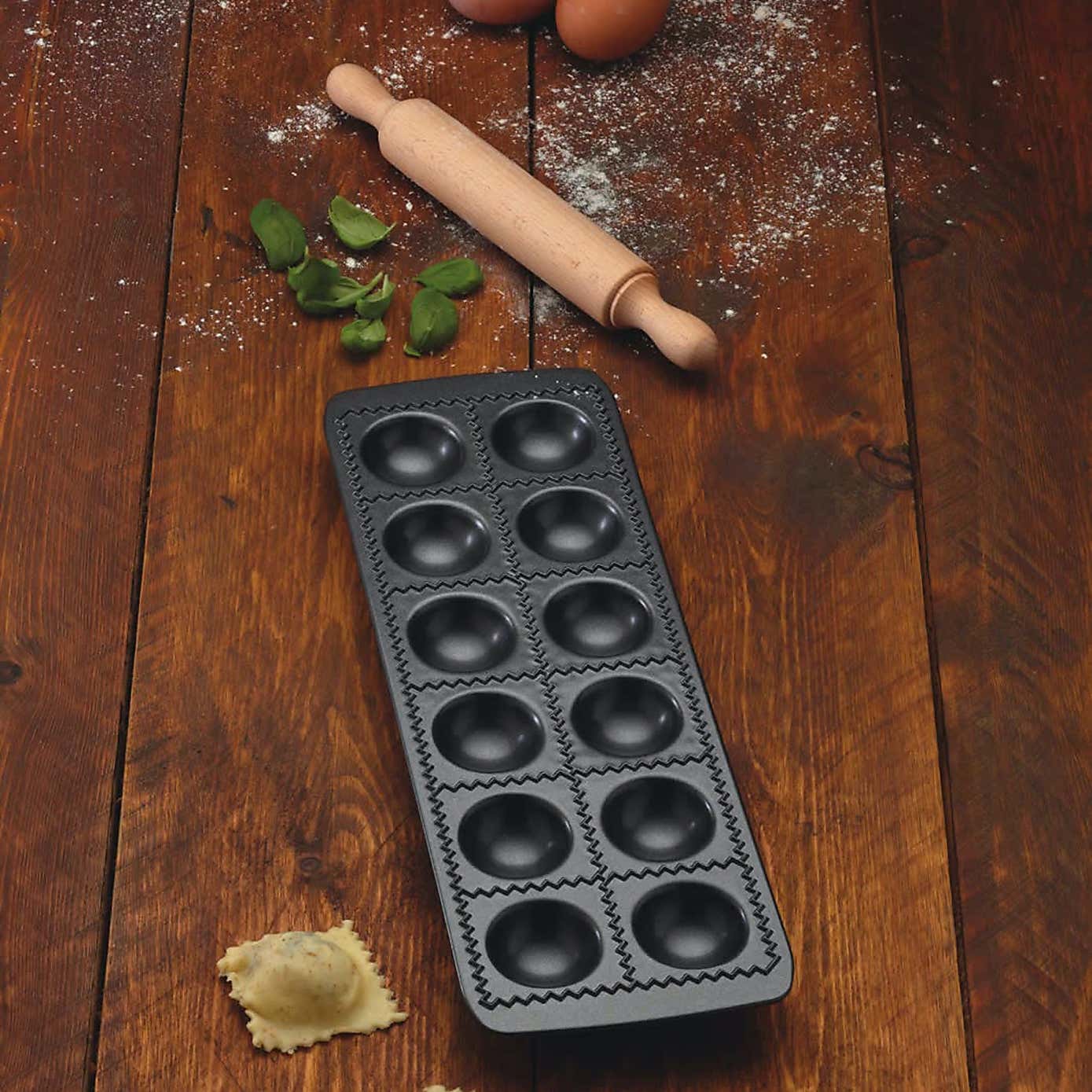 KitchenCraft World of Flavours Italian Non-Stick Ravioli Mould Tray with Rolling Pin