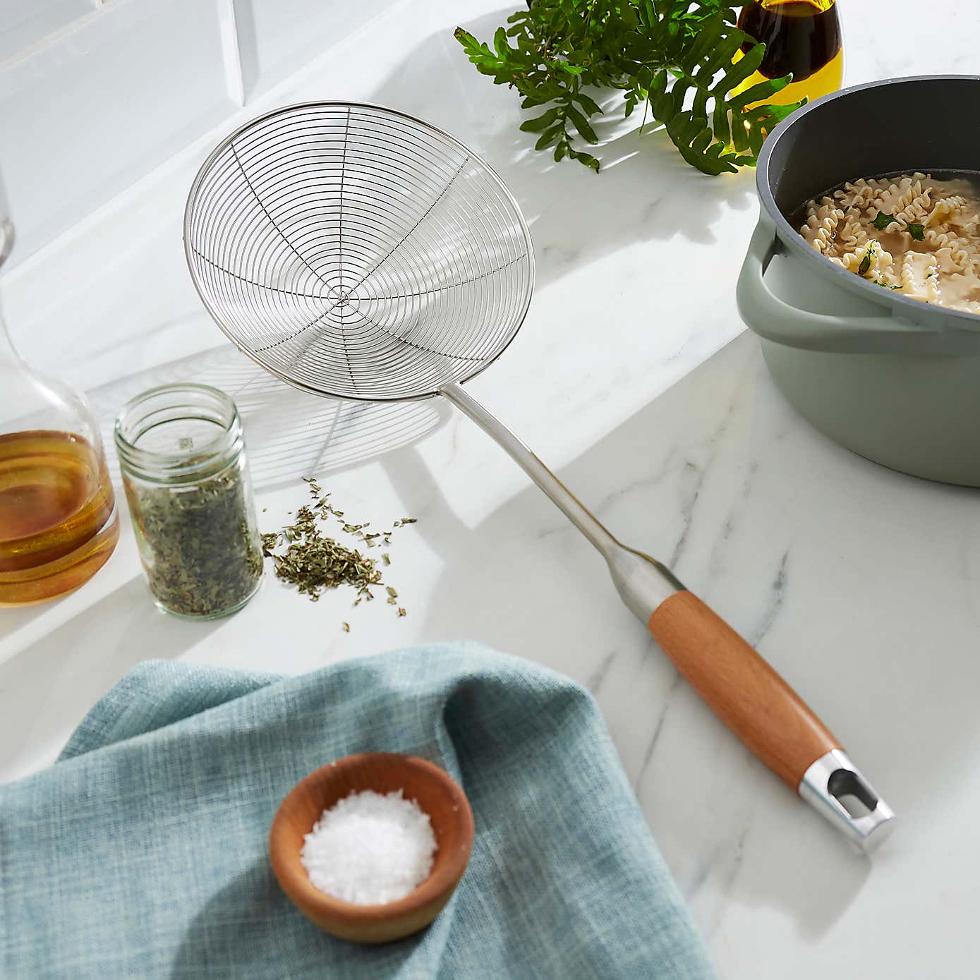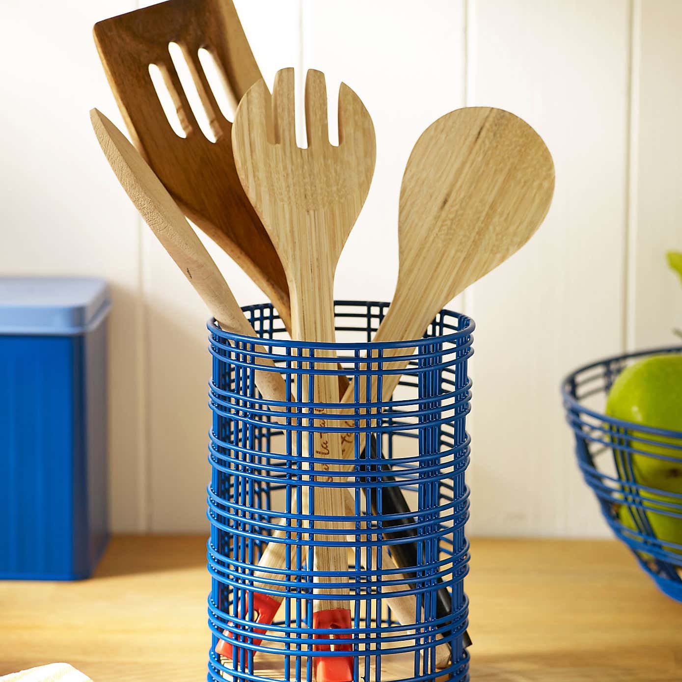 Sur La Table Bamboo and Blue Wire Utensil Pot