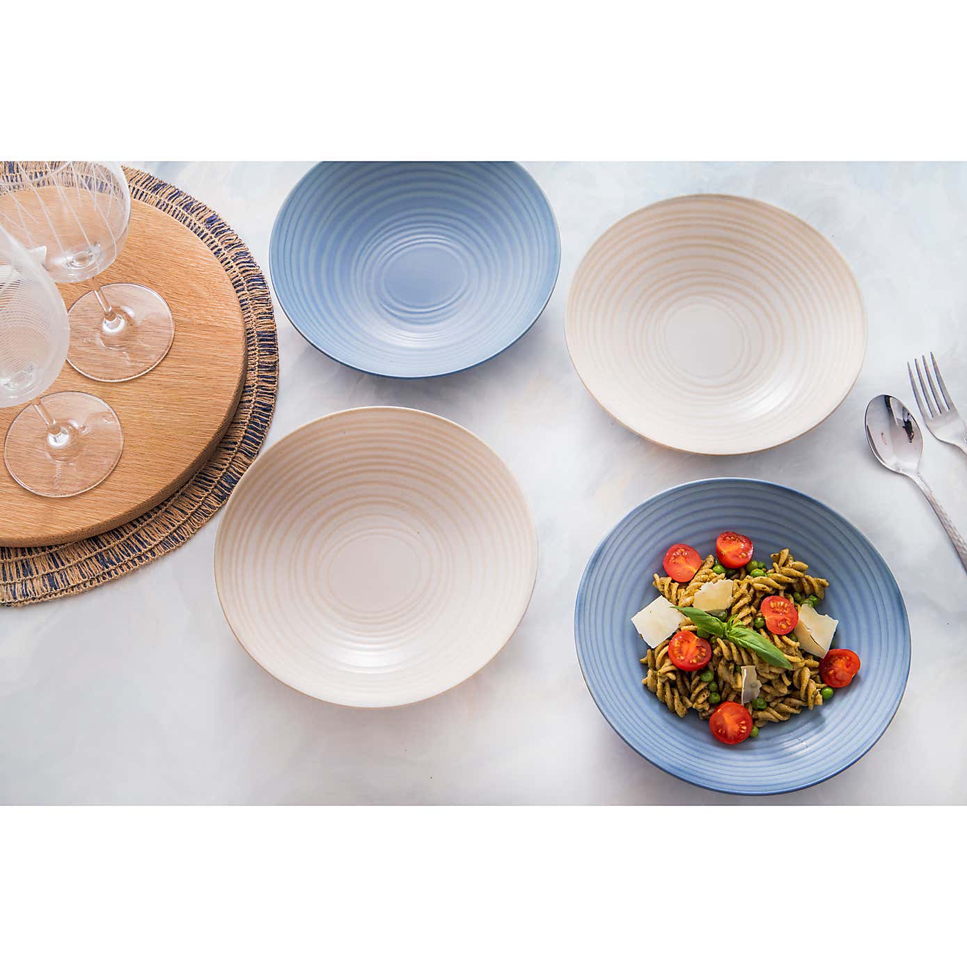 Kitchencraft 4 Piece Blue Pasta Bowl Set 22cm