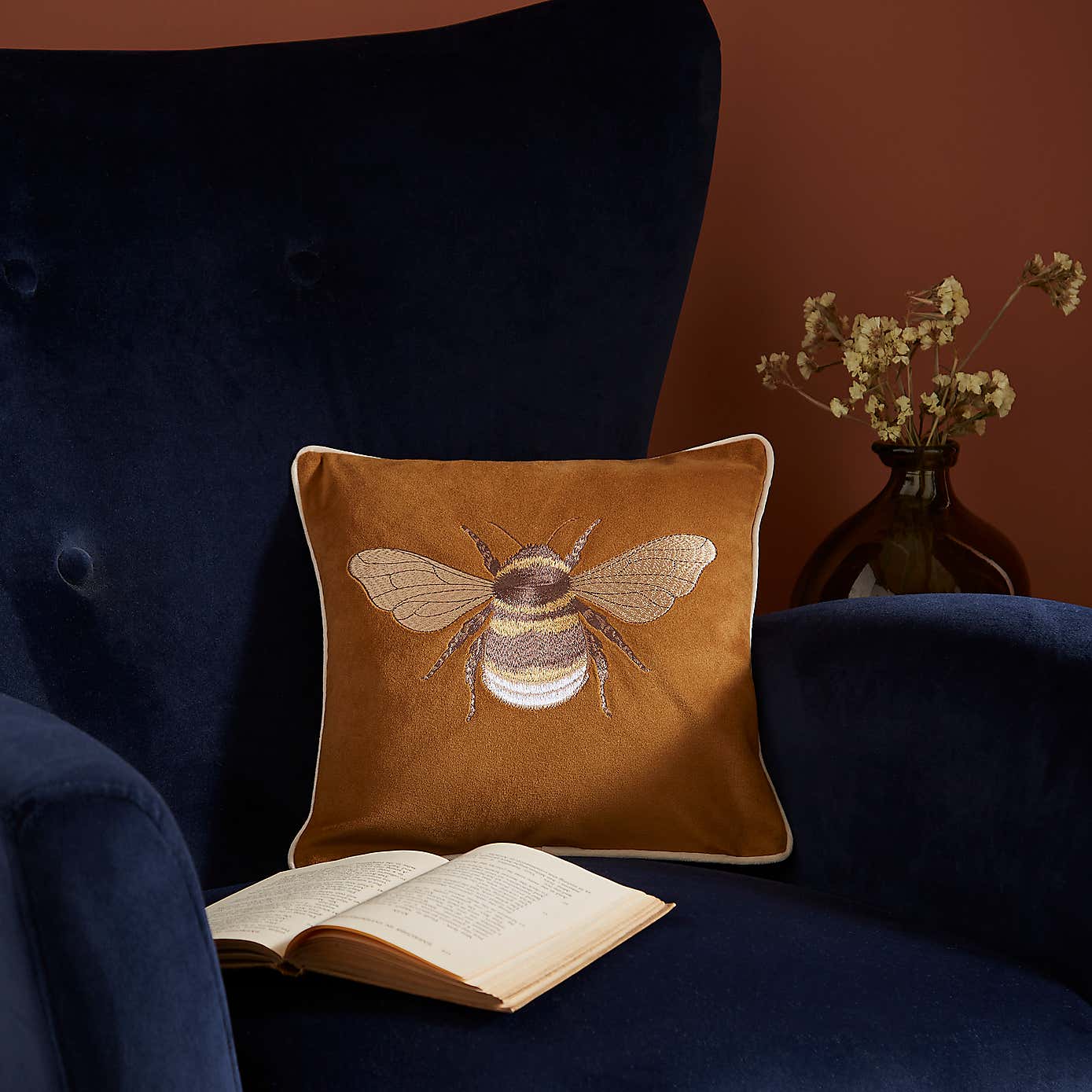 Embroidered Bee Square Cushion