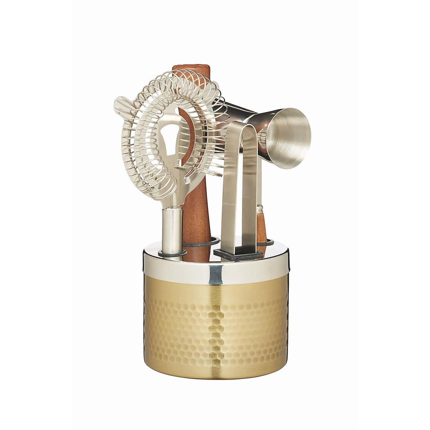 BarCraft Hammered Brass Finish 5 Piece Cocktail Tool Set