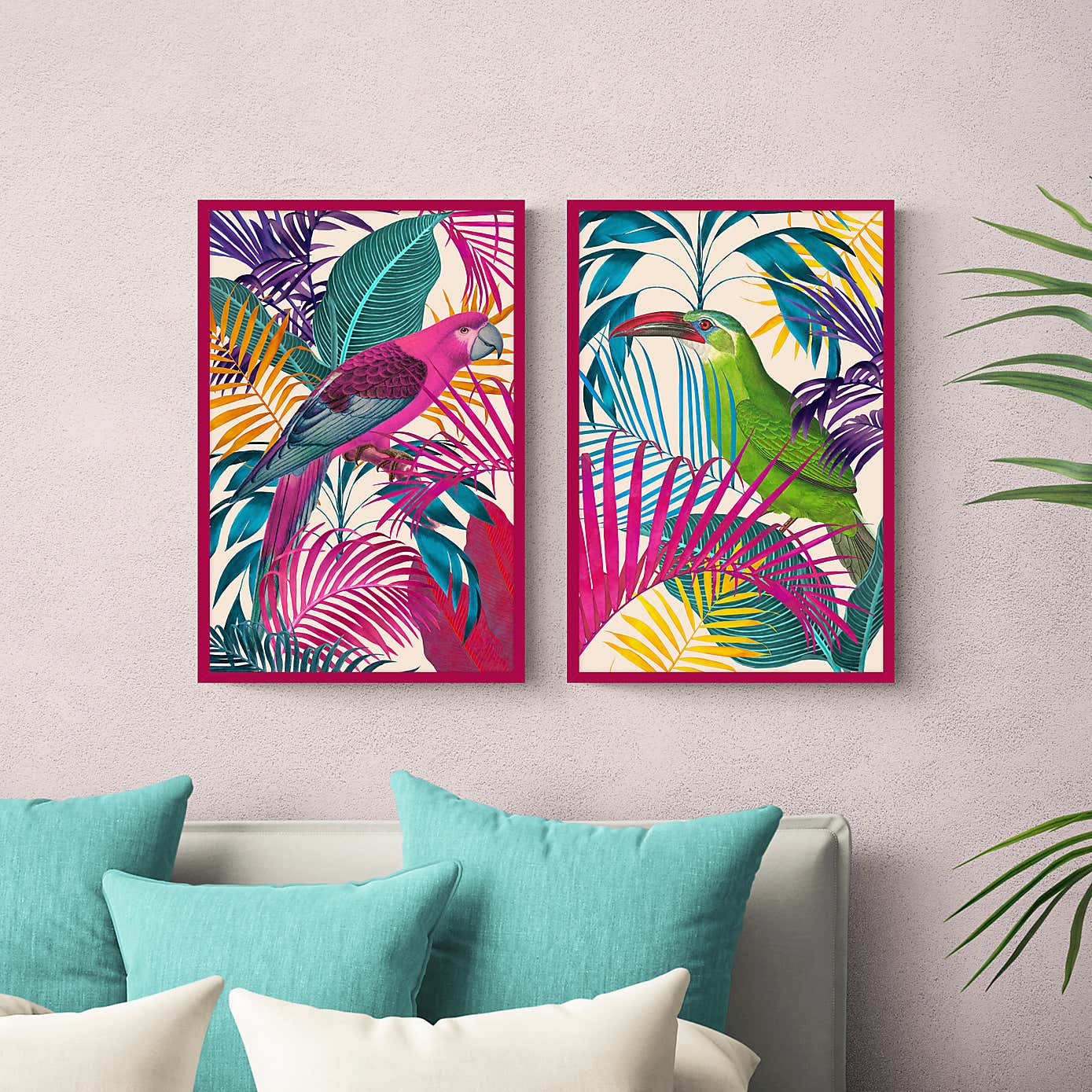 Set of 2 Electric Jungle Birds Framed Prints