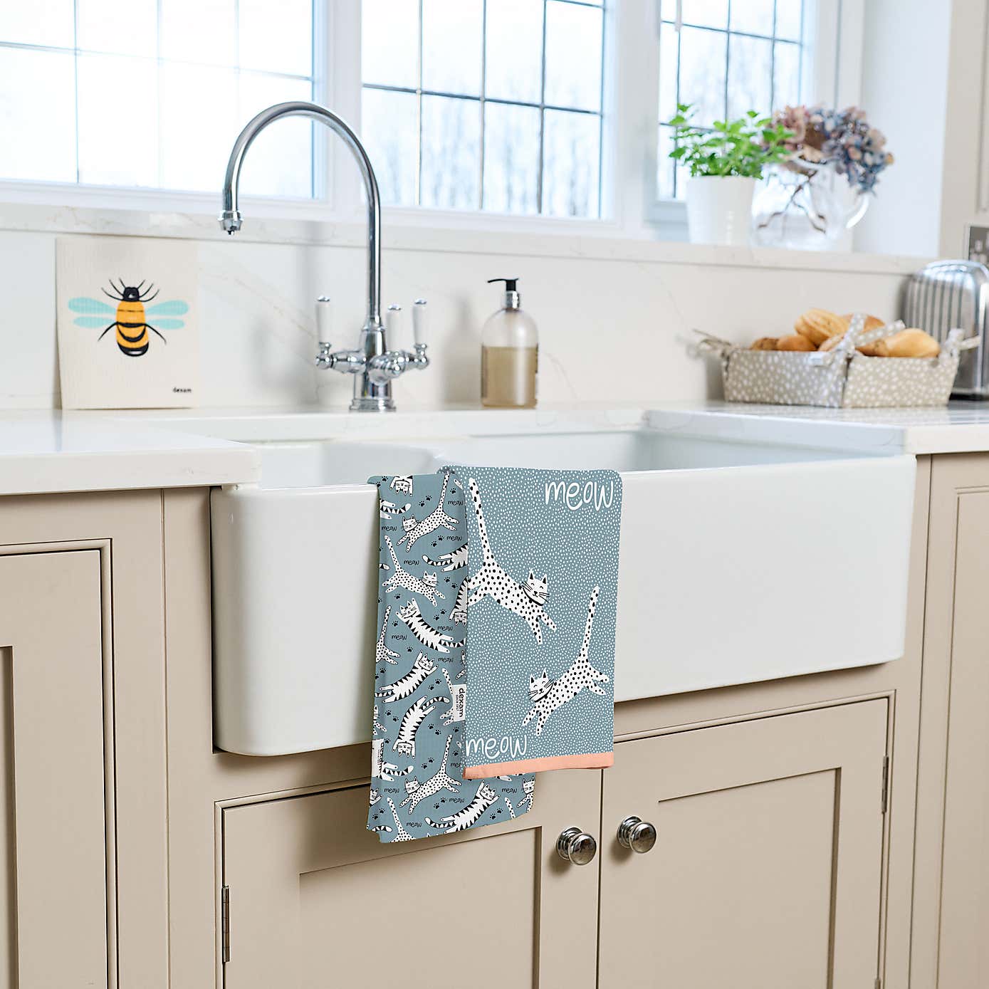 Dexam Meow Set of 2 Cotton Blue Tea Towels