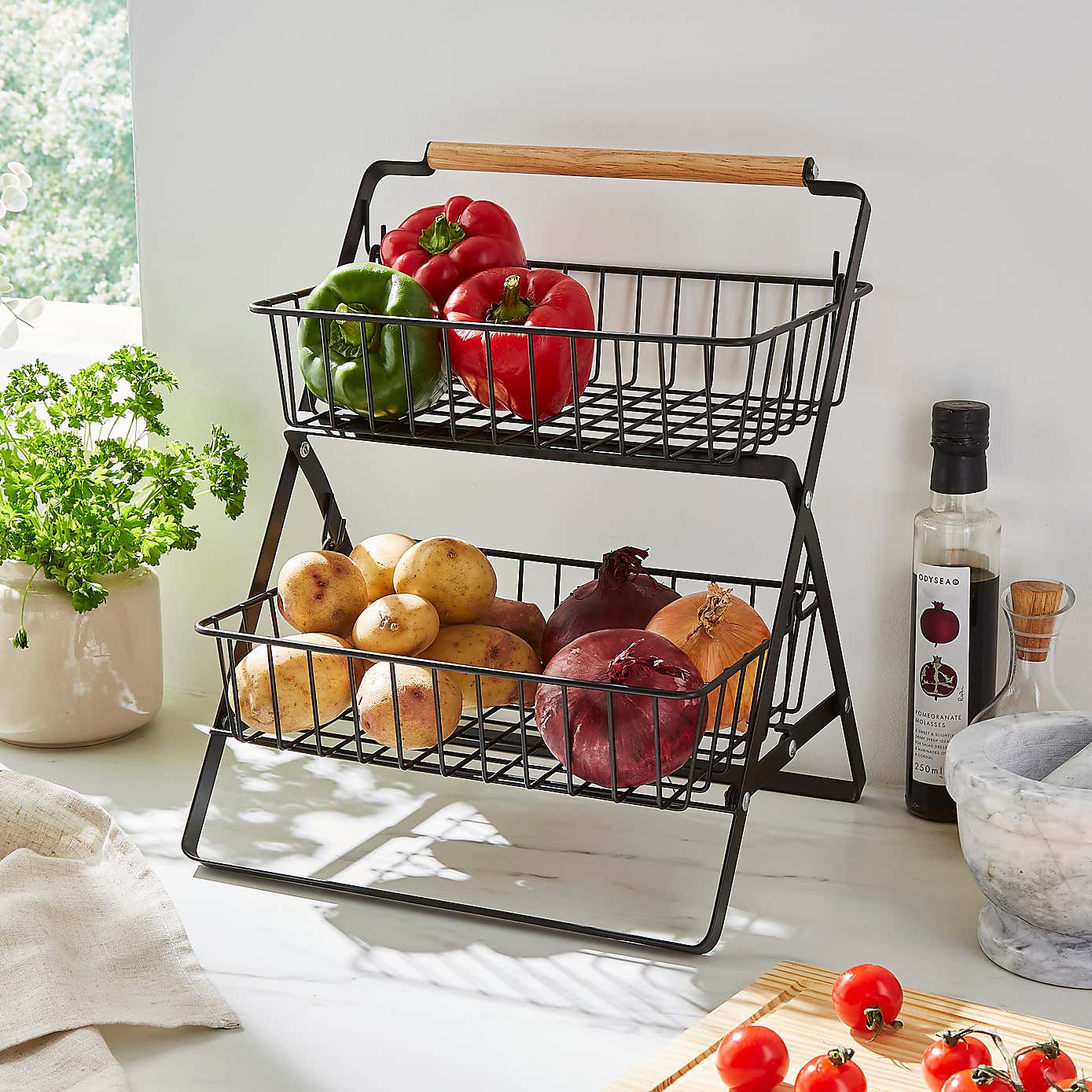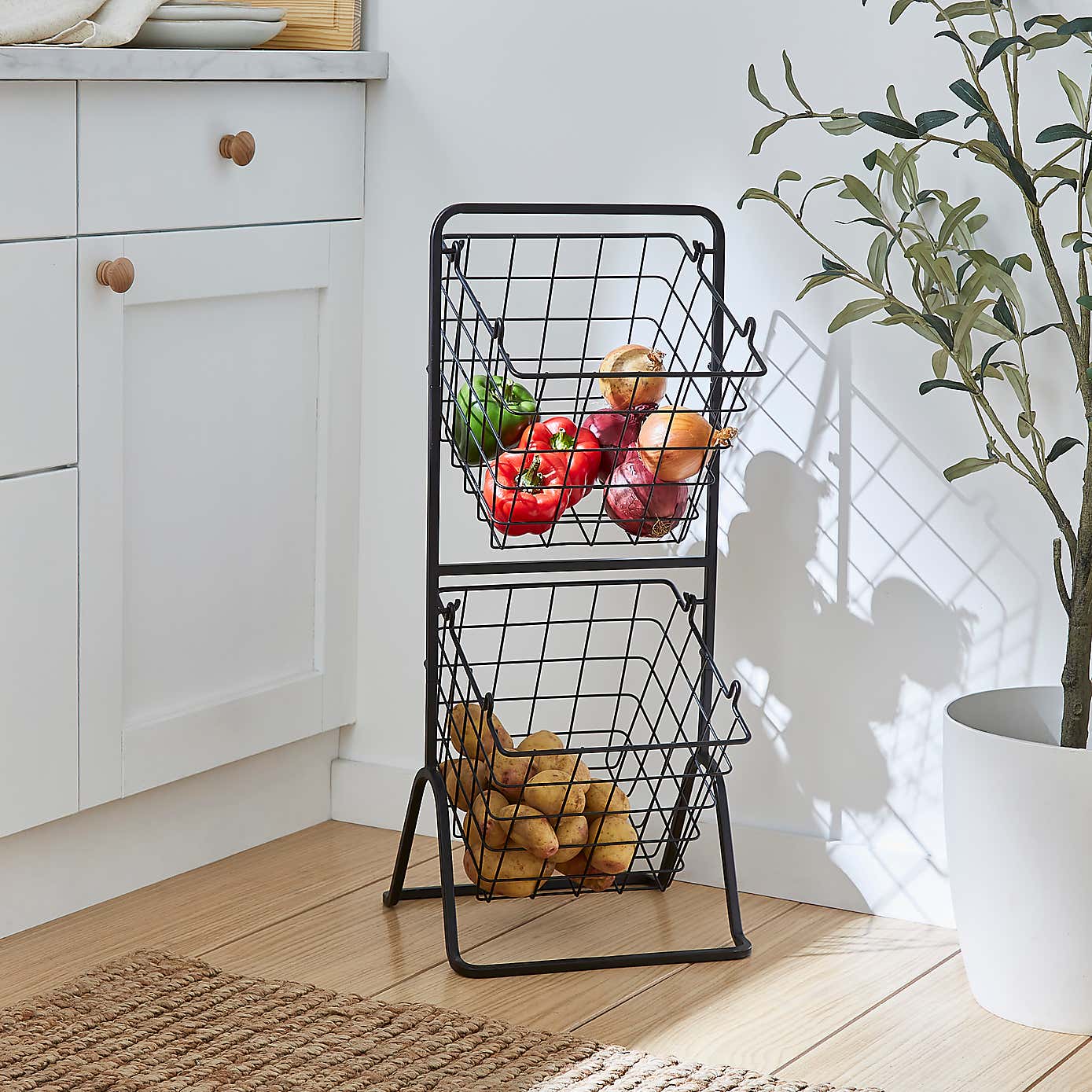 Black Wire 2 Tier Free standing Baskets