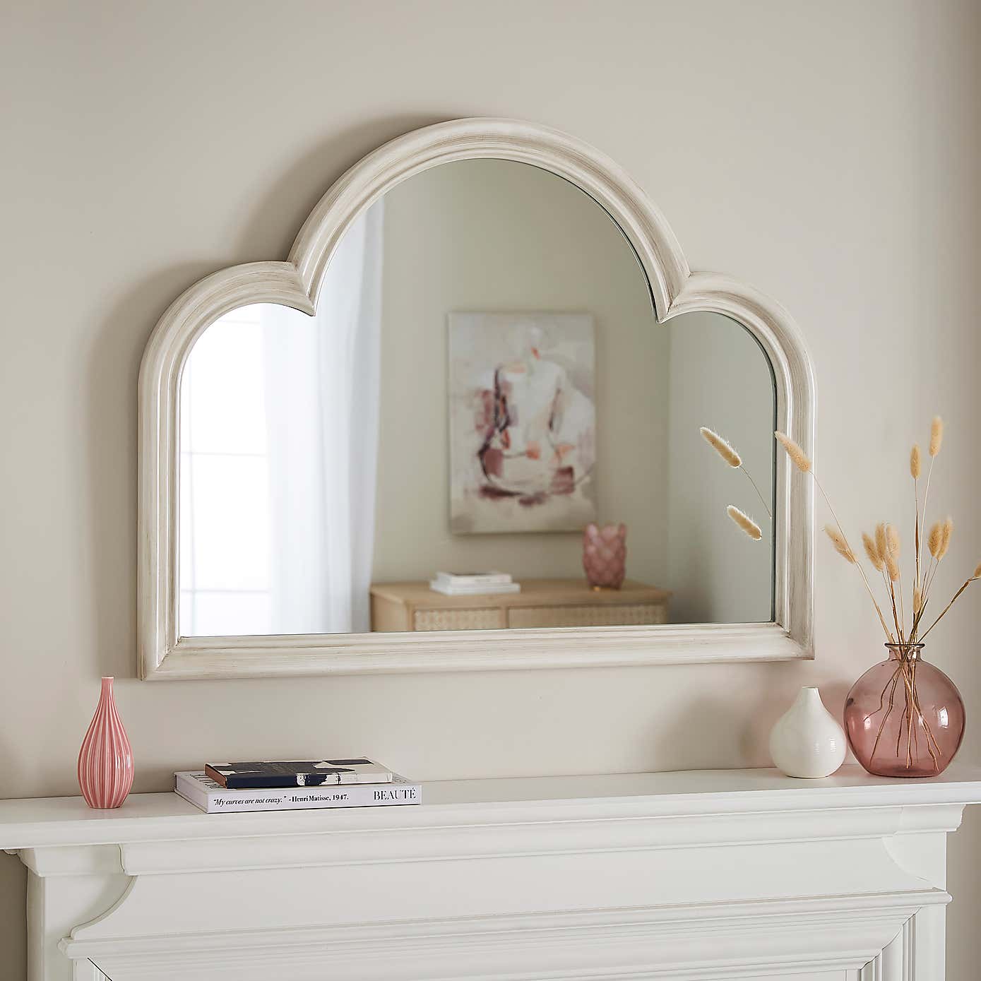 Sandstone Washed Curved Overmantel Wall Mirror