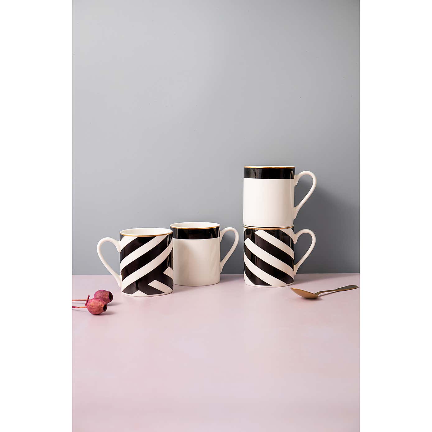 Mikasa Set of 4 Luxury Deco Stripe Clay Mugs