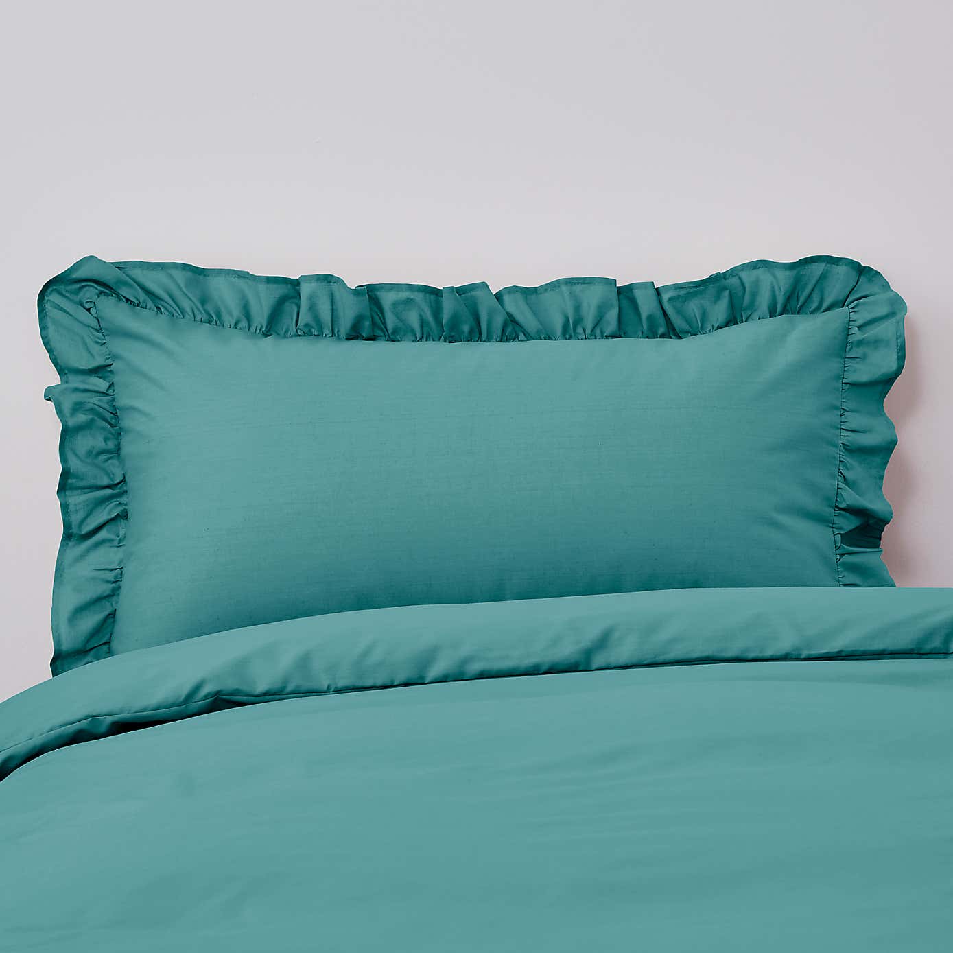 Non Iron Plain Dye Aqua Frilled Pillowcase