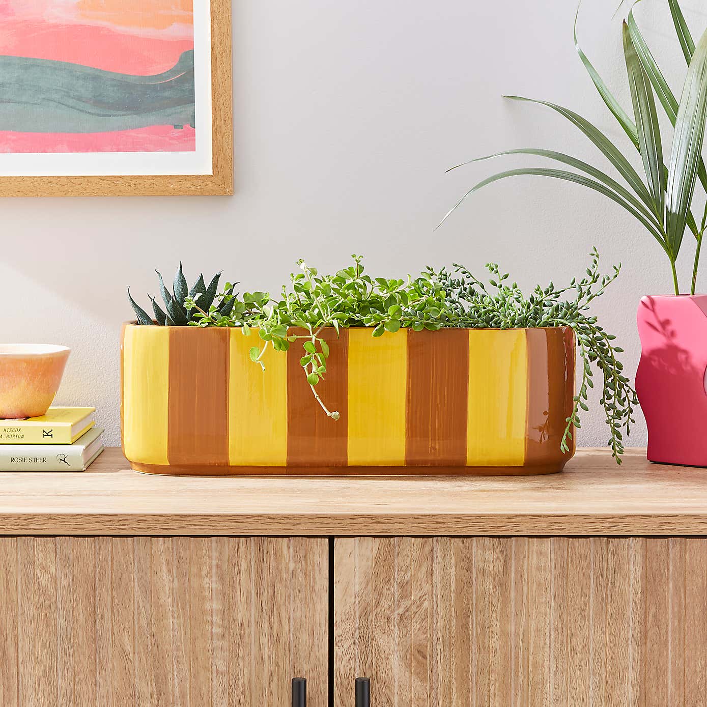 Elements Striped Ceramic Windowsill Plant Pot