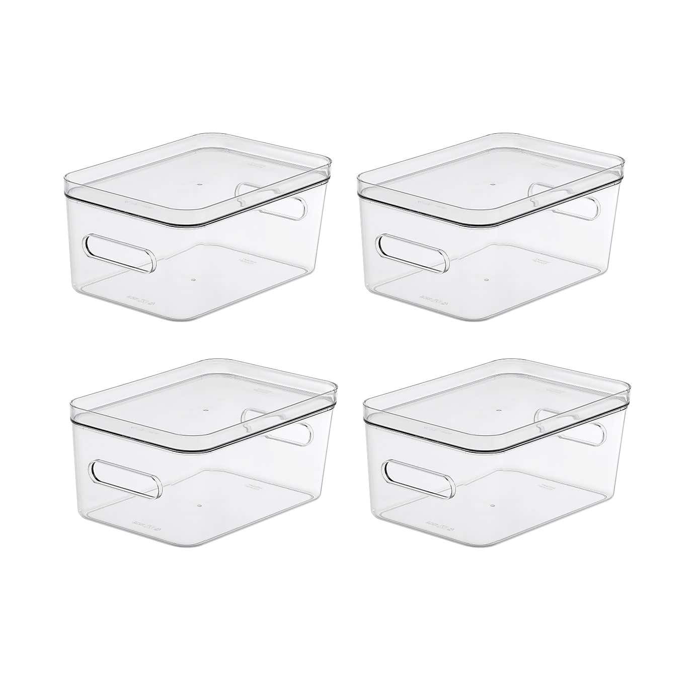 Compact Storage Tub Medium with lids 5.3L Set of 4, Clear