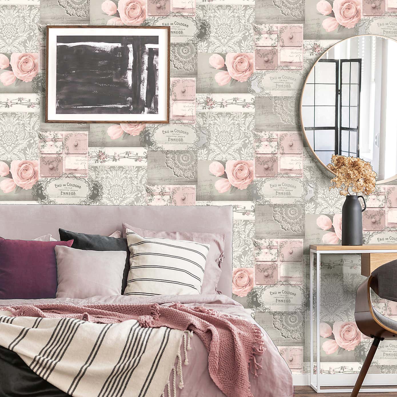 Ophelia Decoupage Blush Wallpaper